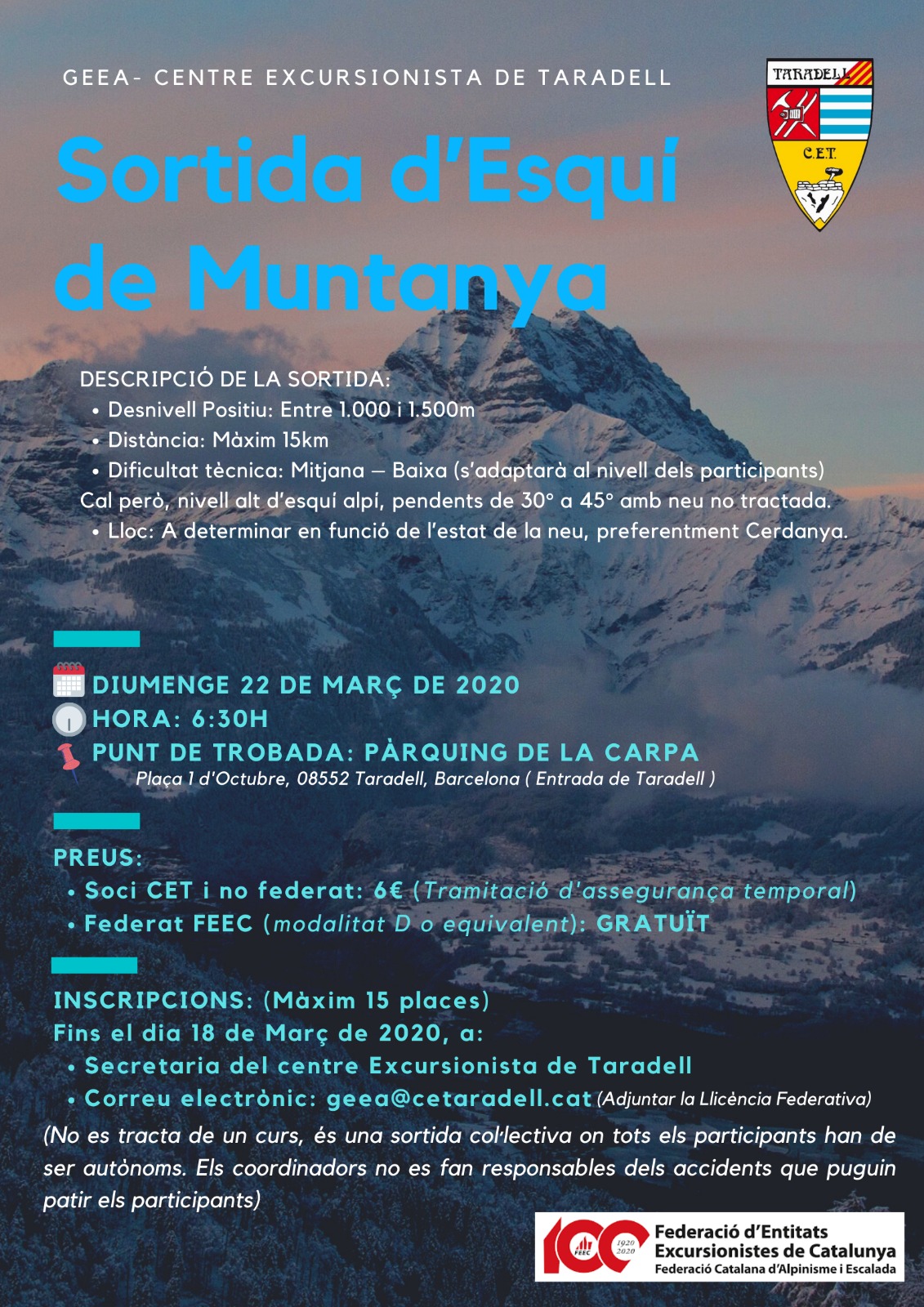 Lloc: A determinar en funció de l’estat de la neu, preferentment Cerdanya.