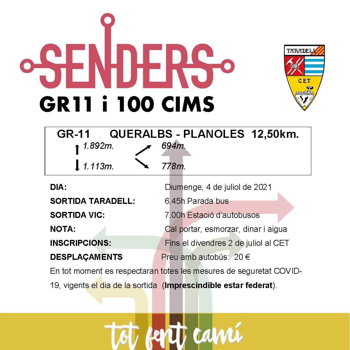 NOTES: En tot moment es respectaran totes les mesures de seguretat COVID-19, vigents el dia de la sortida. És imprescindible estar federat.