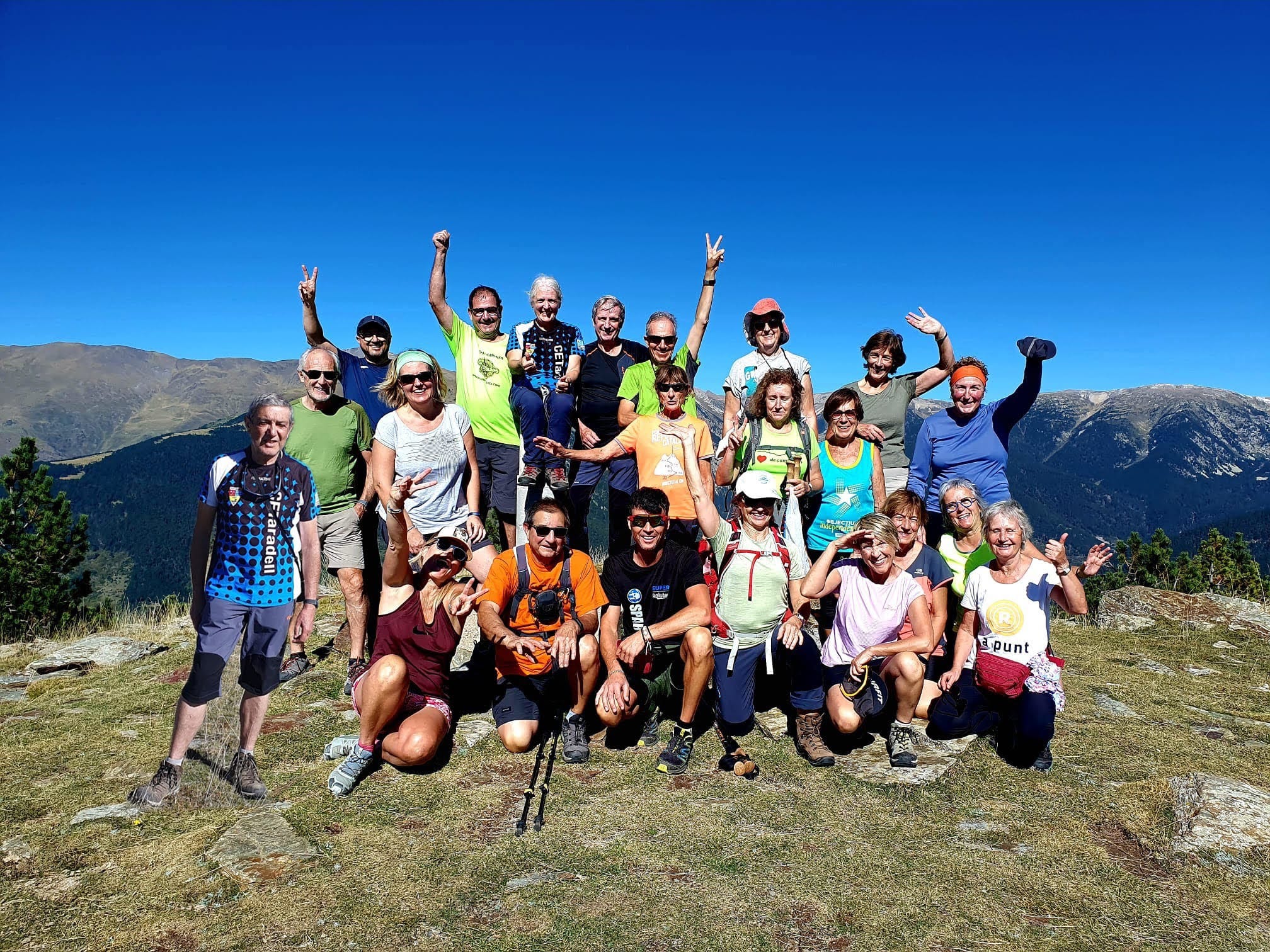 A la foto els participants a la sortida al Puig de les Agudes (01/10/2023)El diumenge 1 d’octubre es va fer la sortida de Senders. Aquest cop vam fer una sortida circular de 14 km. Vam sortir de Setcases per anar fins al Puig de les Agudes (100 cims de la FEEC) i un cop fet el cim vam emprendre el camí de tornada, altre cop cap a Setcases. Vam tenir un dia assolellat i vam poder gaudir d’unes bones vistes del Pirineu, i alguns encara van poder collir algun bolet. |